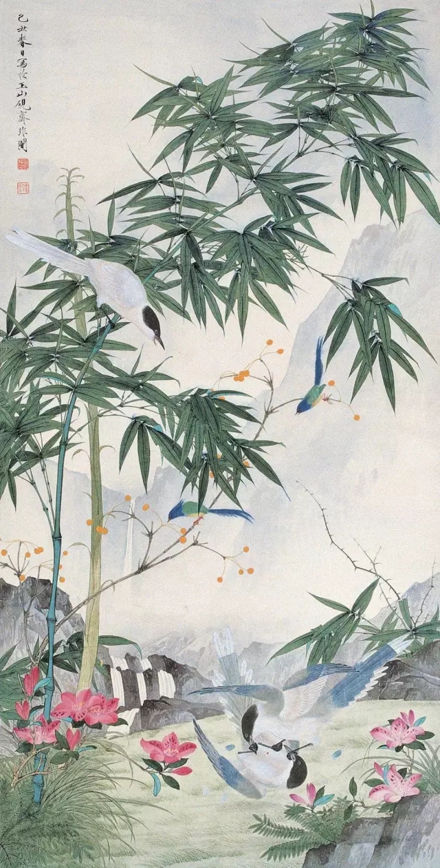 于非闇先生作品《鸟嬉春眼漾》