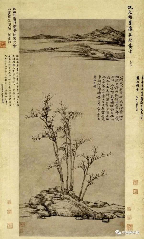 元 倪瓒 渔庄秋霁图轴 纸本水墨 96.1cm×46.1cm 上海博物馆藏